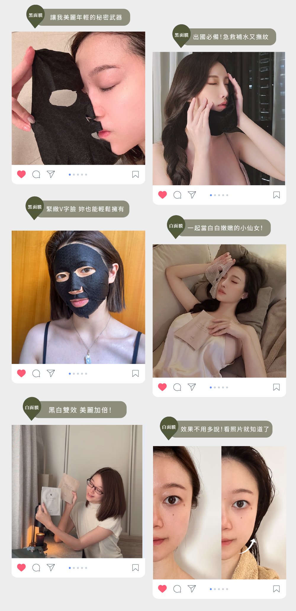 建議:每週至少敷2次,黑白面膜一起用,緊緻煥白一次擁有!